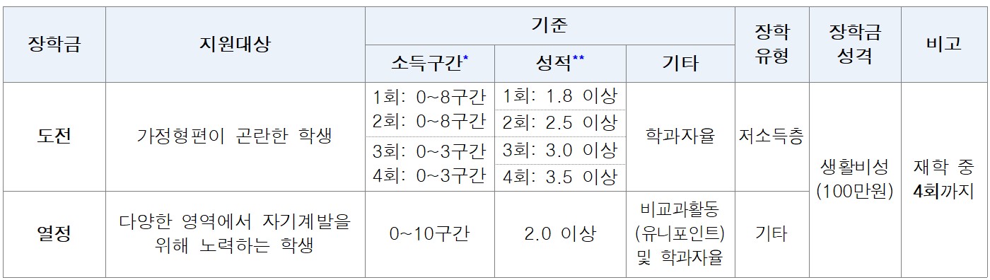 [장학금명] 인천대사랑장학금(도전, 열정)