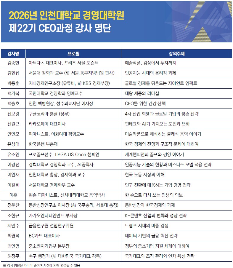 2026년 국립인천대학교 경영대학원 최고경영자(CEO)과정 모집 안내